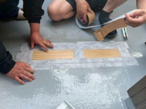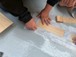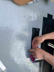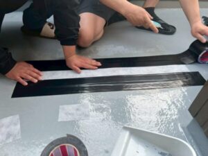 下地を簡易的に整えたうえで、防水性の高いブチルテープを使用し、ひび割れや隙間をしっかりと塞いでいます。