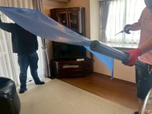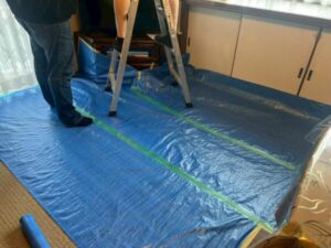 まずは室内側を養生し、作業中も室内が汚れないように配慮いたしました。