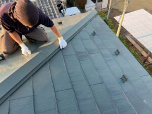 屋根を詳しく確認したところ、棟板金の隙間から雨水が浸入している状態でした。