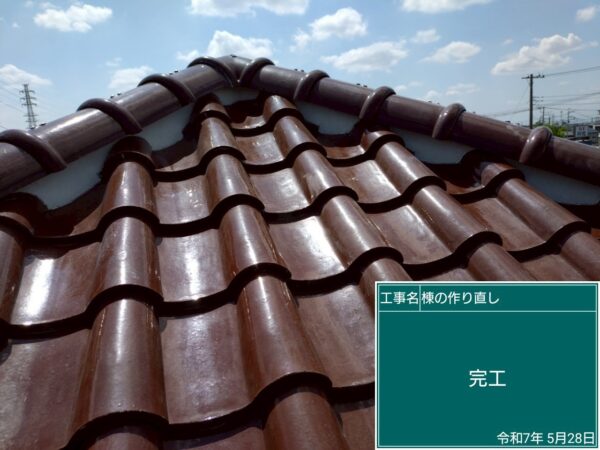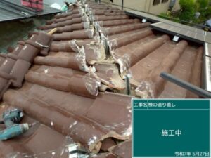 ▷類似の施工実績:越谷市にて屋根修理<棟瓦の積み直し・漆喰工事>