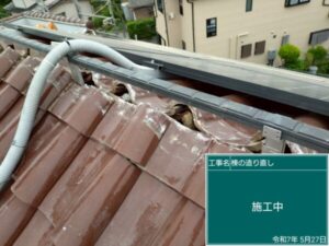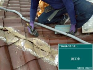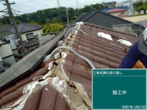 越谷市にて屋根修理〈漆喰の剥がれ・漆喰工事〉